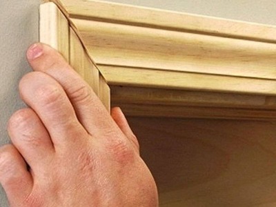 Сначала производятся замеры, затем материал распиливается и выбирается способ его укладки. Затем он монтируется под углом 45° либо 90°.